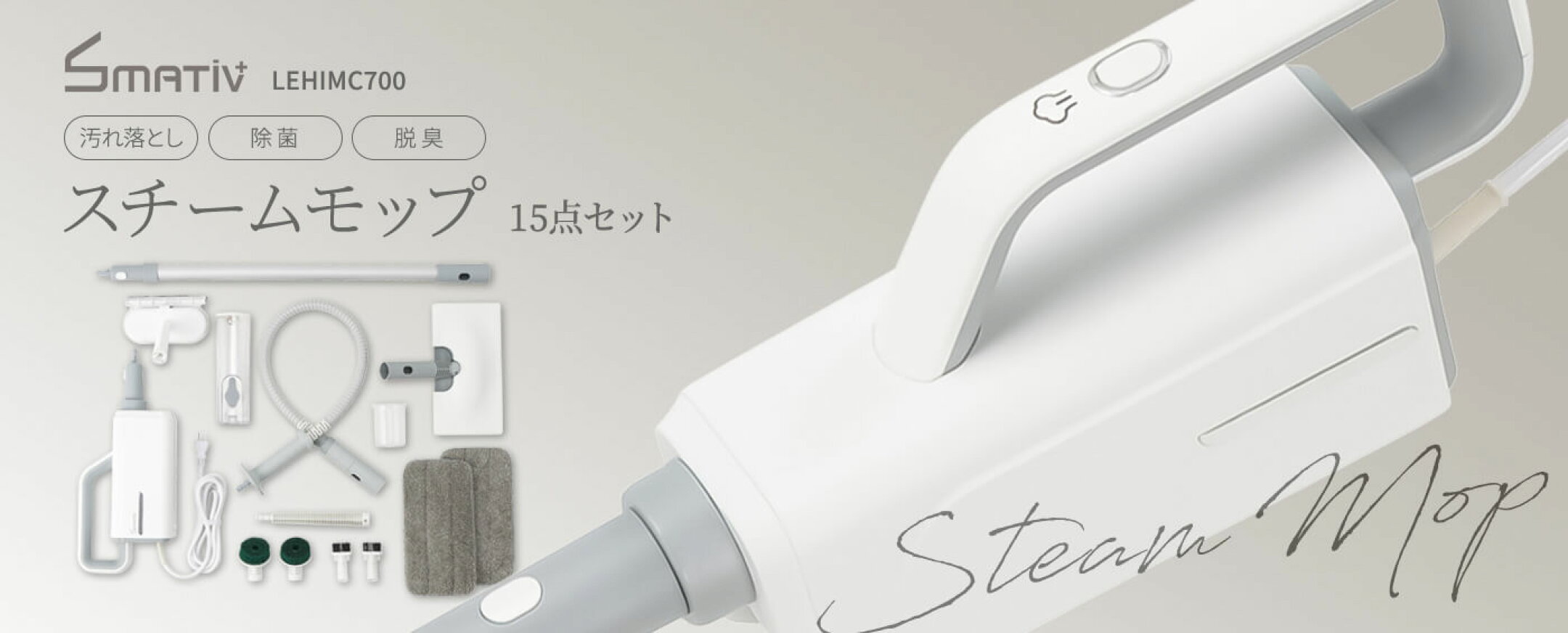 スチームクリーナー 高温スチーム ハンディ 軽量 除菌 脱臭 瞬間起動 洗浄 掃除機 キッチン コンロ 換気扇 油汚れ 大容量給水タンク スチームモップ スチーム掃除機 エアコン 窓ガラス 玄関 浴室 フローリング カーペット 家庭用 丸洗いOK 日本メーカー スマティブ LEHIMC700