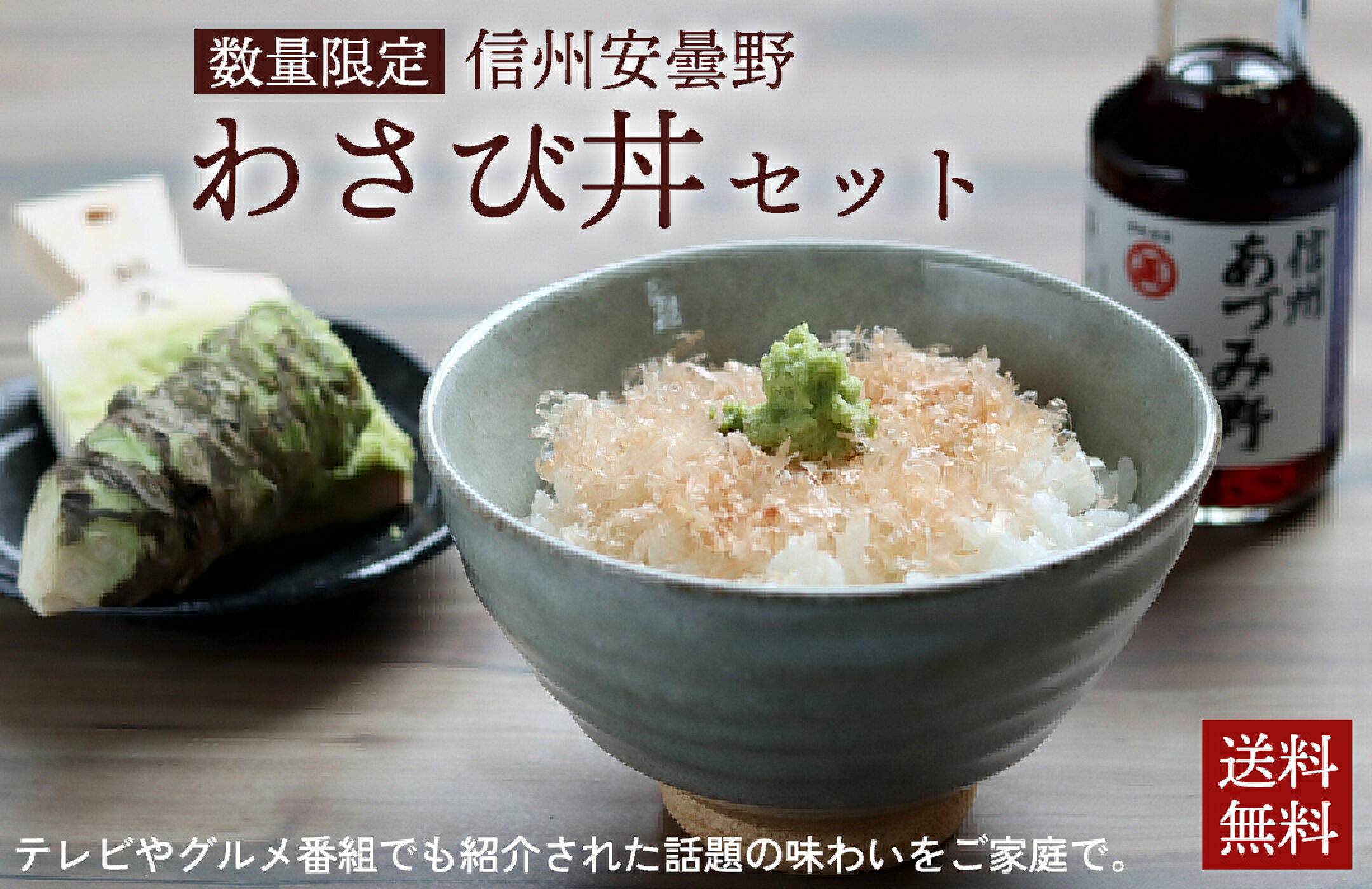 【数量限定】安曇野わさび丼セット 送料無料 鰹節(血合い抜き)・信州あづみ野醤油・本わさびお一人様1セット限り 節分 ギフト プレゼント 食べ物 お取り寄せ 催事 内祝 長野 信州