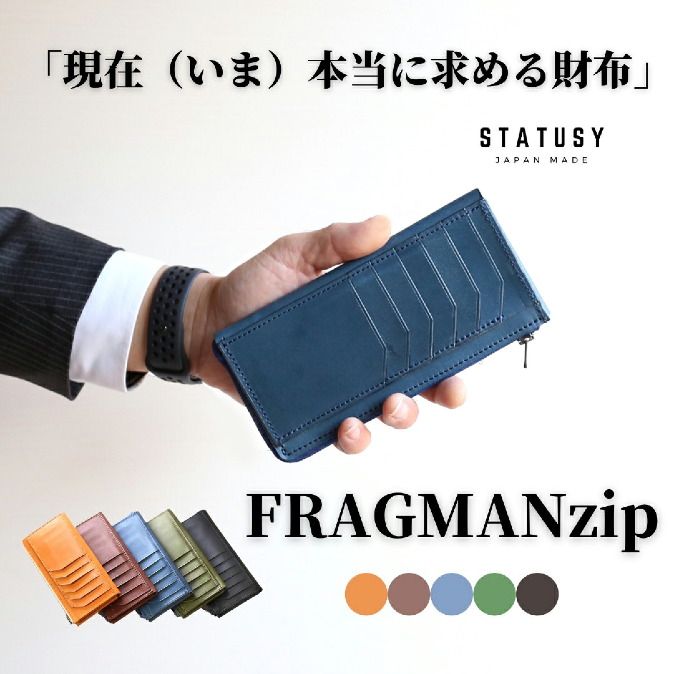 【FRAGMANzip】 極小Lファスナー 長財布 紙幣を折らずに50枚収納 日本製 長財布 薄いのに 大容量 栃木レザー 財布 メンズ 本革 コンパクト ウォレット ミニ レディース 小さめ シンプル ビジネス アイデア 便利 時短 スリム スマート 薄型 STATUSY 退職祝い ギフト