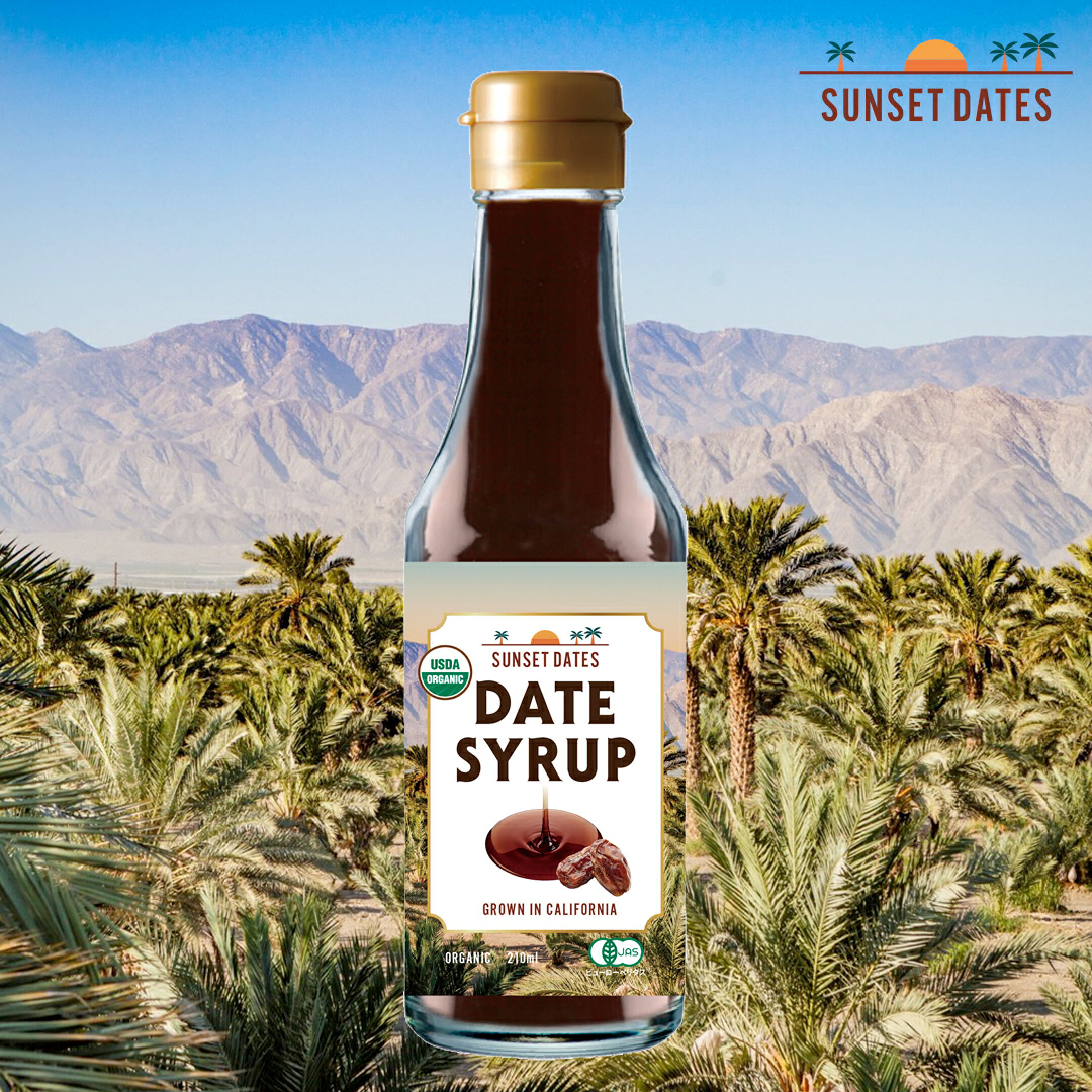 デーツシロップ 有機 オーガニック デーツ ナツメヤシ 低GI マジョール種 カリフォルニア産 プレミアム 低糖質 食物繊維 ミネラル ベジタリアン ビーガン ハラール ダイエット 腸活 離乳食 代替甘味料 無添加 サンセットデーツ SUNSET DATES 210ml