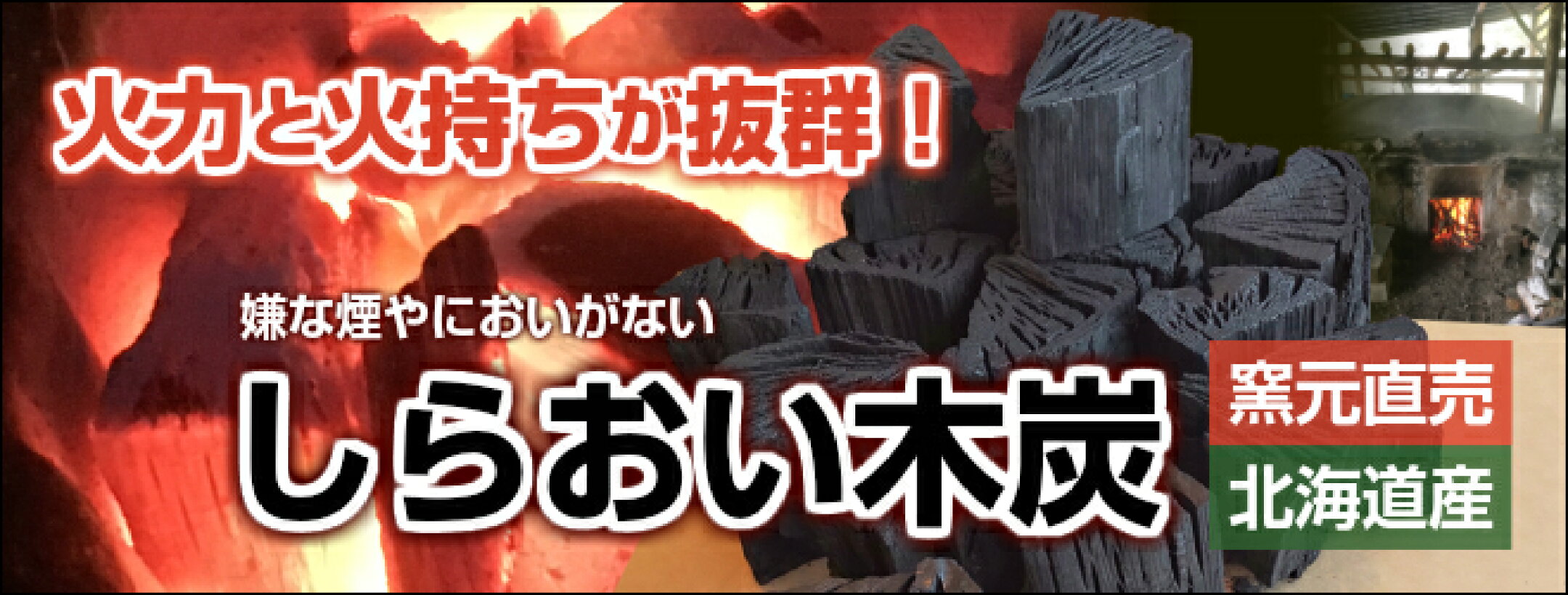 しらおい木炭 3kg(バラ炭)(少人数用) 楢が主原料の黒炭 [大西林業] 国産/北海道産 楢炭 なら炭 窯元直販!アウトドア BBQ、七輪 コンロ のバーべキュー 焼肉に。火鉢や囲炉裏を使う屋内利用も可能な炭/ 燃料 炭 火力が強く火持ちが良い! 3キロ/