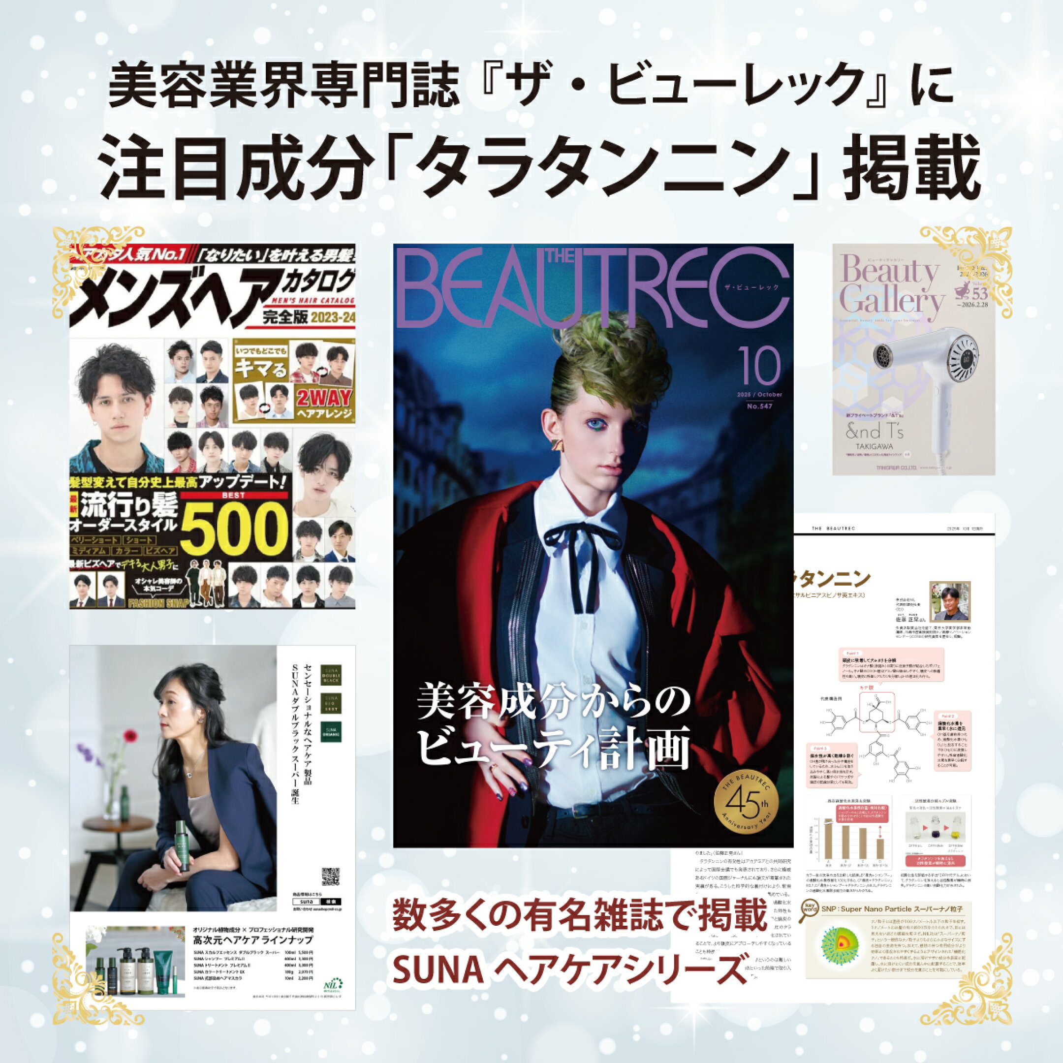 <<世界初の技術がつまったSUNAシリーズ>> 年齢、ストレスなどによって、増えるといわれている白髪。 気になる⽩髪や髪のやせ細り、頭⽪のダメージといったお悩みに答え今求められる髪と頭皮のエイジングケアを、 植物のチカラと研究歴40年の技術力でかたちにしました。 *弊社が世界で初めてPCPC(米国化粧品工業会)に登録した化粧品原料カエサルピニアスピノサ莢エキス (Caesalpinia Spinosa Fruit Pod Extract.通称タラタンニン INCI番号:16691)