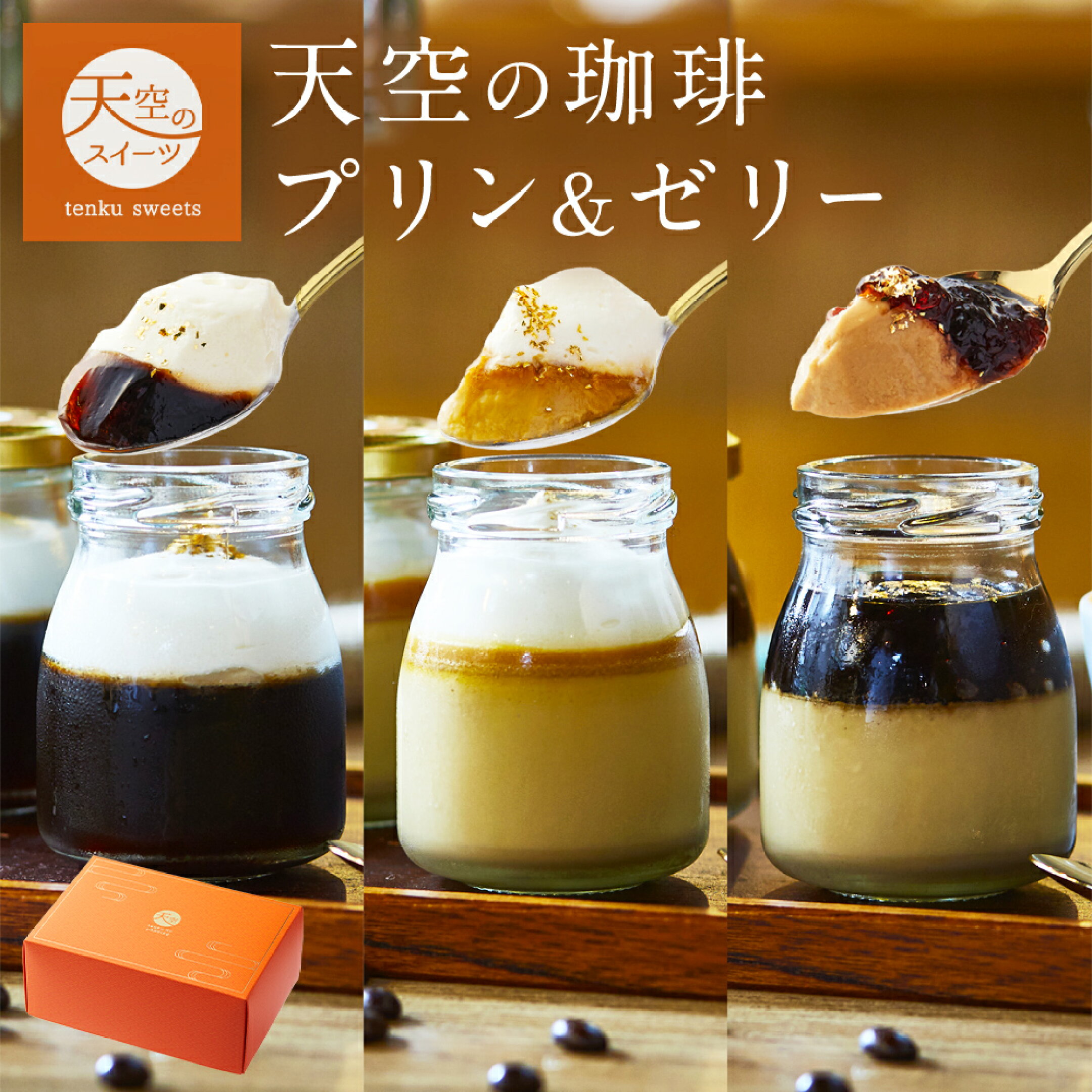 \15%OFFクーポン有/【 お歳暮 】 天空のプリン & コーヒー ゼリー 詰め合わせ 送料無料 6個入り 夏ギフト 濃厚 最高級 ハロウィン お取り寄せ 誕生日 プレゼント 贈り物