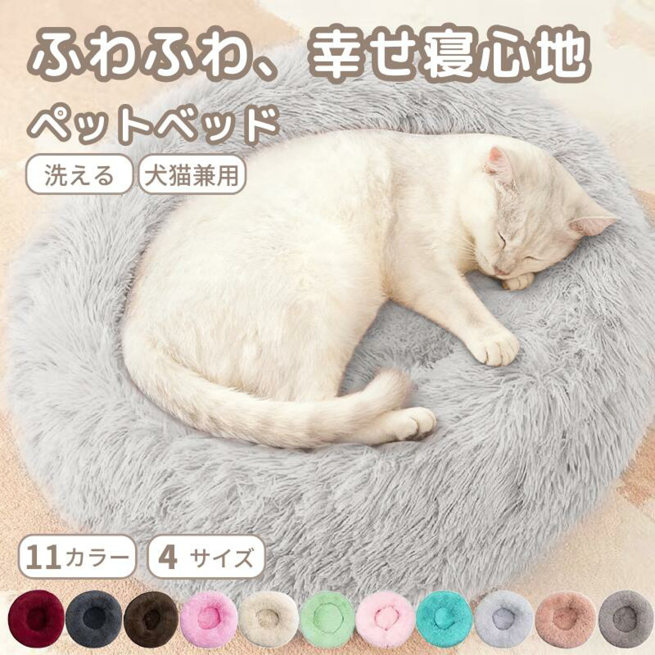 まんまるまるで雲のような ふかふかクッション 【カラーとサイズを選べる】ので、 インテリアになじみます。 【寝転んだ姿勢にフィット】するので ワンちゃんネコちゃんも【安心】して すやすや寝れます