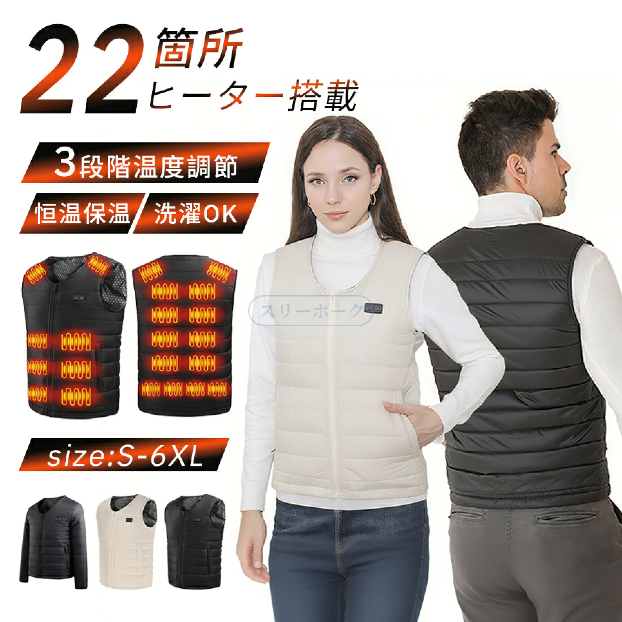 【先着100枚★20%OFF!1/24 20時〜争奪戦開始!】電熱ベスト ヒーターベスト バッテリー付き 加熱ベスト レディース 22箇所発熱 20000mAh大容量バッテリー付き 電熱ウェア メンズ レディース 3段階温度調整 USB給電 防寒 ヒートベスト 洗濯可 加熱 発熱