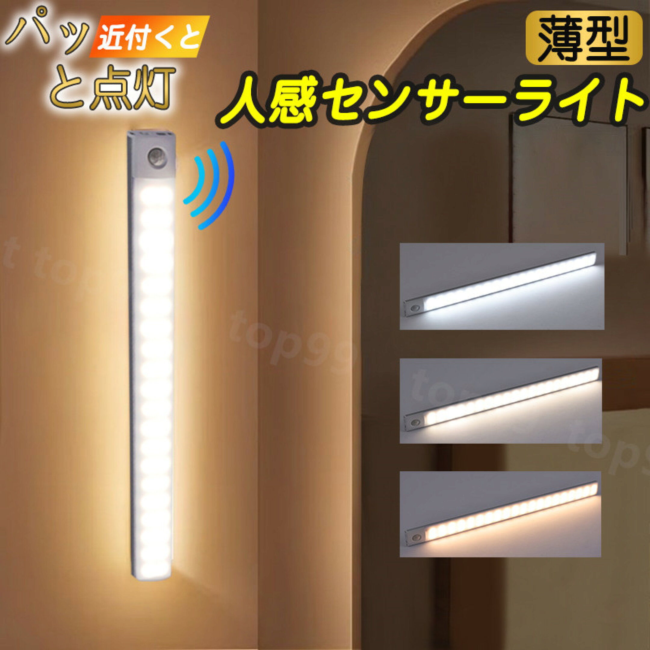 【1/2の確率当選最大100%ポイントバック】★楽天1位獲得【進級版】 センサーライト 人感センサーライト LEDセンサーライト 3段階調色 無段階調光 大容量 室内 マグネット キッチン用ライト 20cm/30cm 超薄型 フットライト玄関 照明寝室 クロゼット 階段 夜間用 常夜灯 省エネ