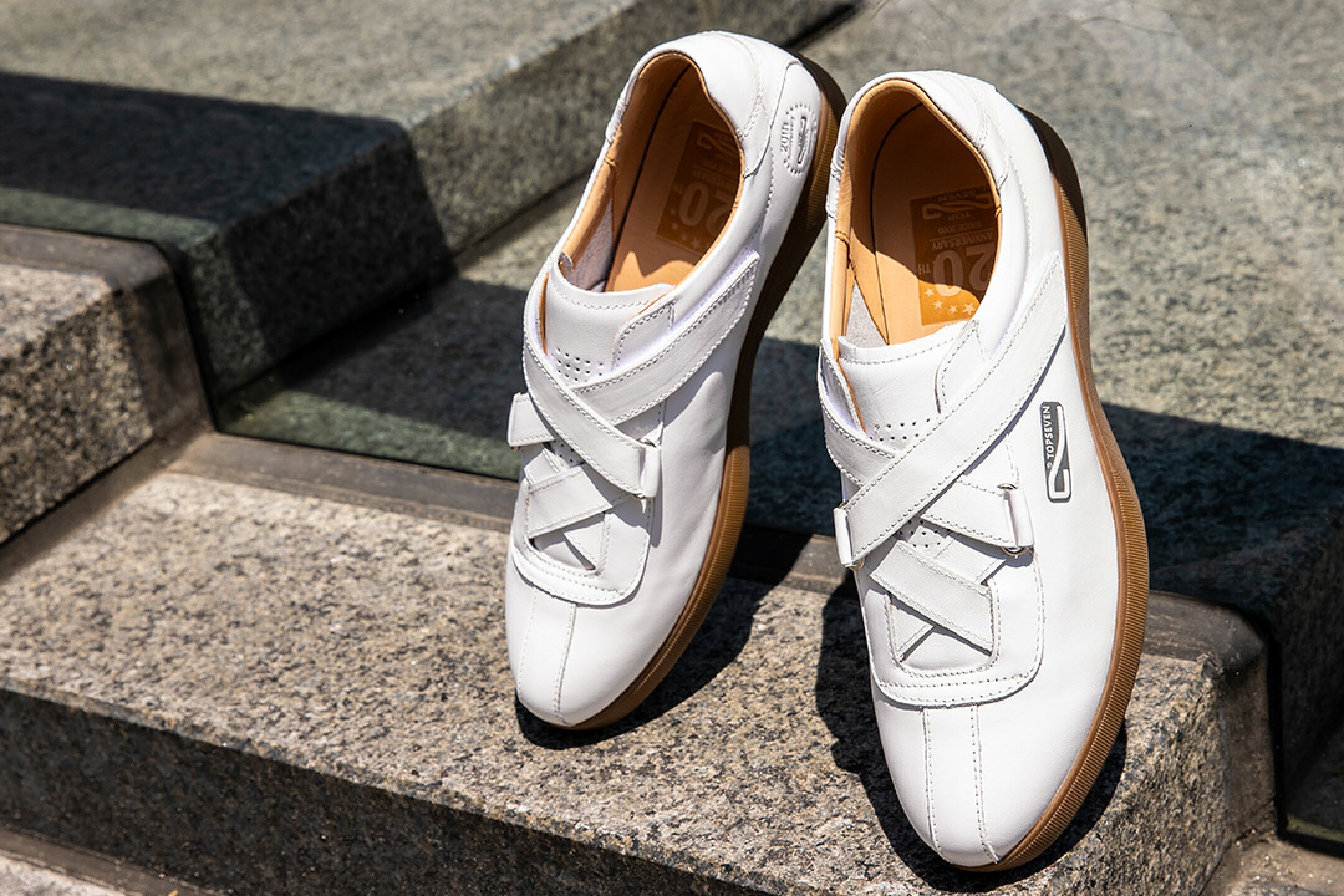 VISA掲載モデル トップセブン【公式】【T7-At1101AN WHT/GUM】20周年記念 限定 白 スニーカー 本革 ベルクロ ガムソール ファッション メンズ レディース ユニセックス クラシック ドレススニーカー スマート ハンドメイド ロングノーズ オーセンティック