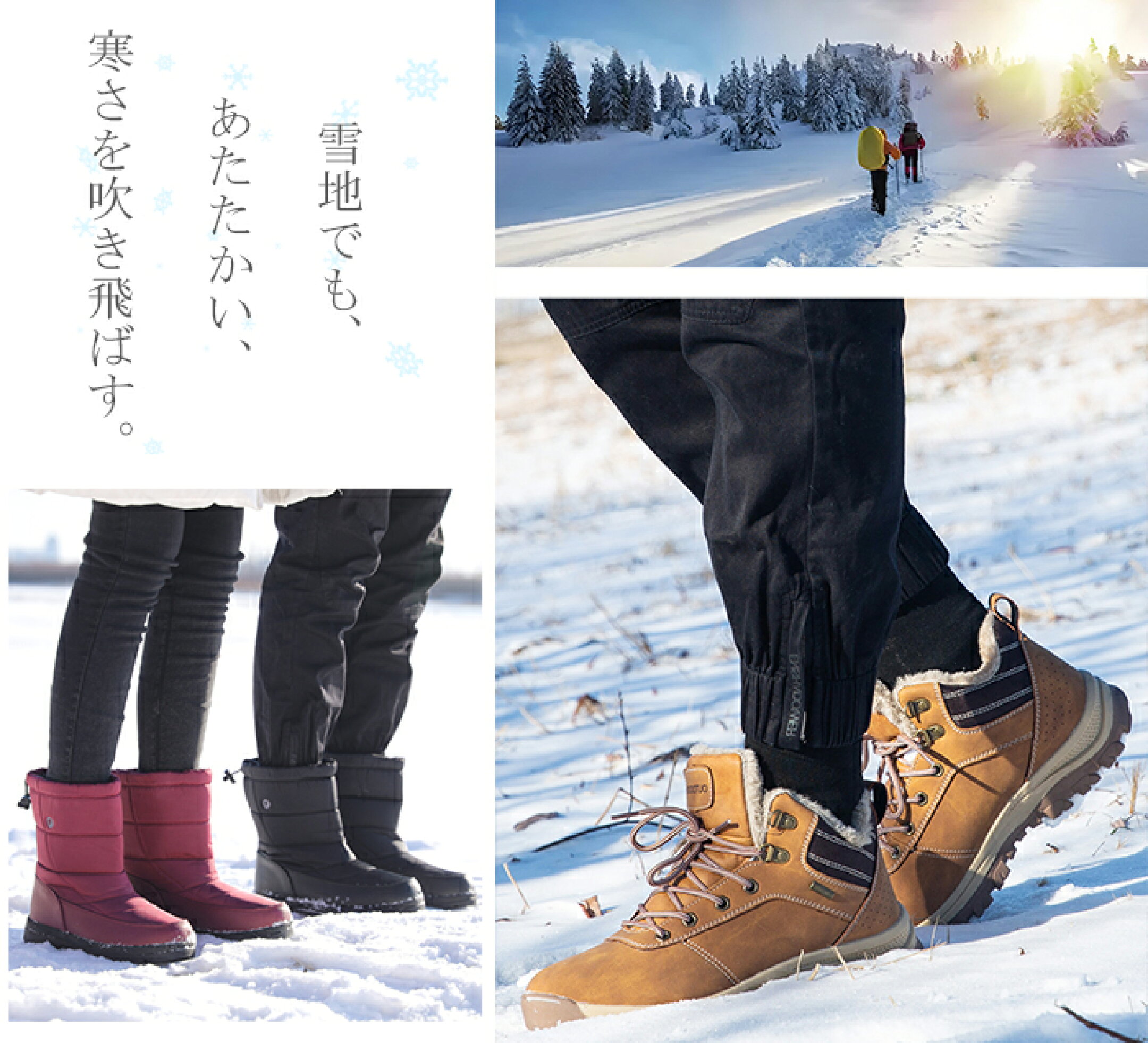 ★2足以上のお買い上げで、もう1足無料で選べます!★ スノーシューズ スノーブーツ レディース アウトドア メンズ レディース ショート ブーツ ユニセックス ミドル丈 防水 防寒 防滑 保暖 冬用 カジュアル 綿靴 雪靴 スノトレ 撥水 滑りにくい ブラック ファッション