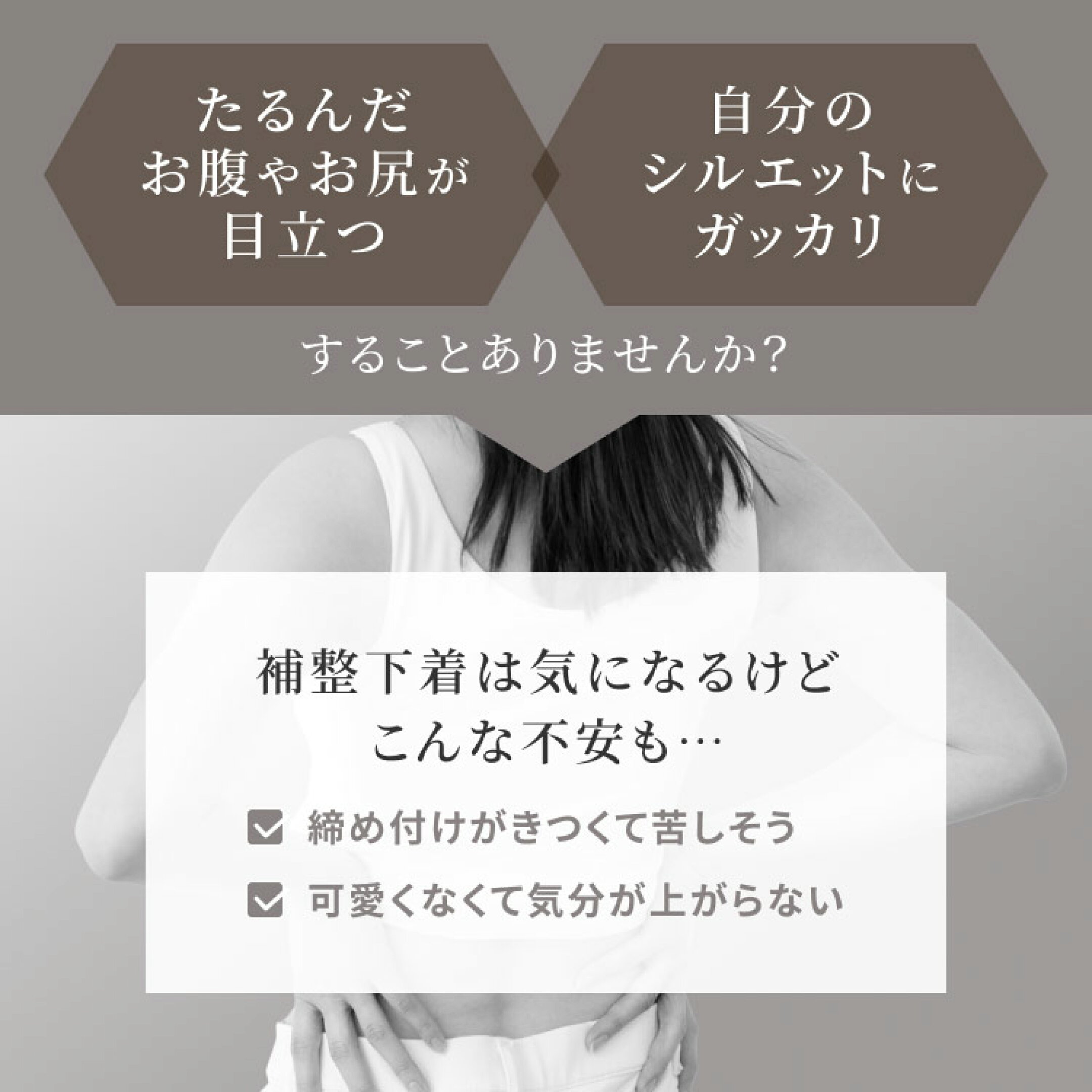 ◤ 苦しくない補整下着 rin to fond de(リントファンデ)◢ 年齢と共に重力に負けてしまうボディライン… でも『補整下着』ってしんどくて着にくいイメージ… ・・・・・・・ ・・・・・・ そんな「オシャレは我慢」なんて時代は終わりました! ーーーーーーーーーーーーーーーーーーー ◤SNSでも大人気!嬉しい声続々!◢ ーーーーーーーーーーーーーーーーーーー 「補整下着なのに、ちゃんと可愛い✨」 「とにかく軽くて着け心地がいい♡」 「着けるといつもより胸やお尻が上向きになった気がする!」 「普段使いできて、気分も上がる!最強補整下着見つけました👀」 ーーーーーーーーーーーーーーーーーーー