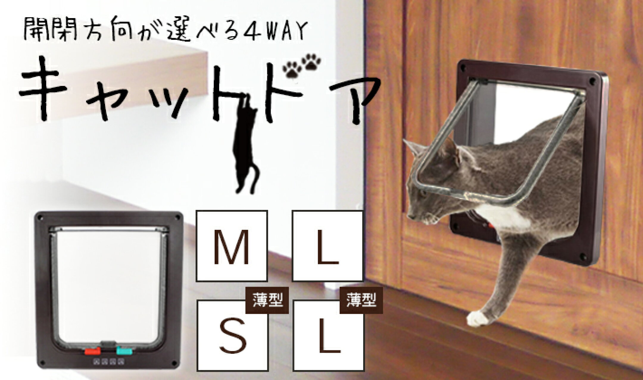 キャットドア ペットドア 説明書付き<M/Lサイズ> 4WAY 開閉ロック機能付き【2サイズ×3カラー】猫 小型犬用に! 出入り後にドアを止める磁石内臓