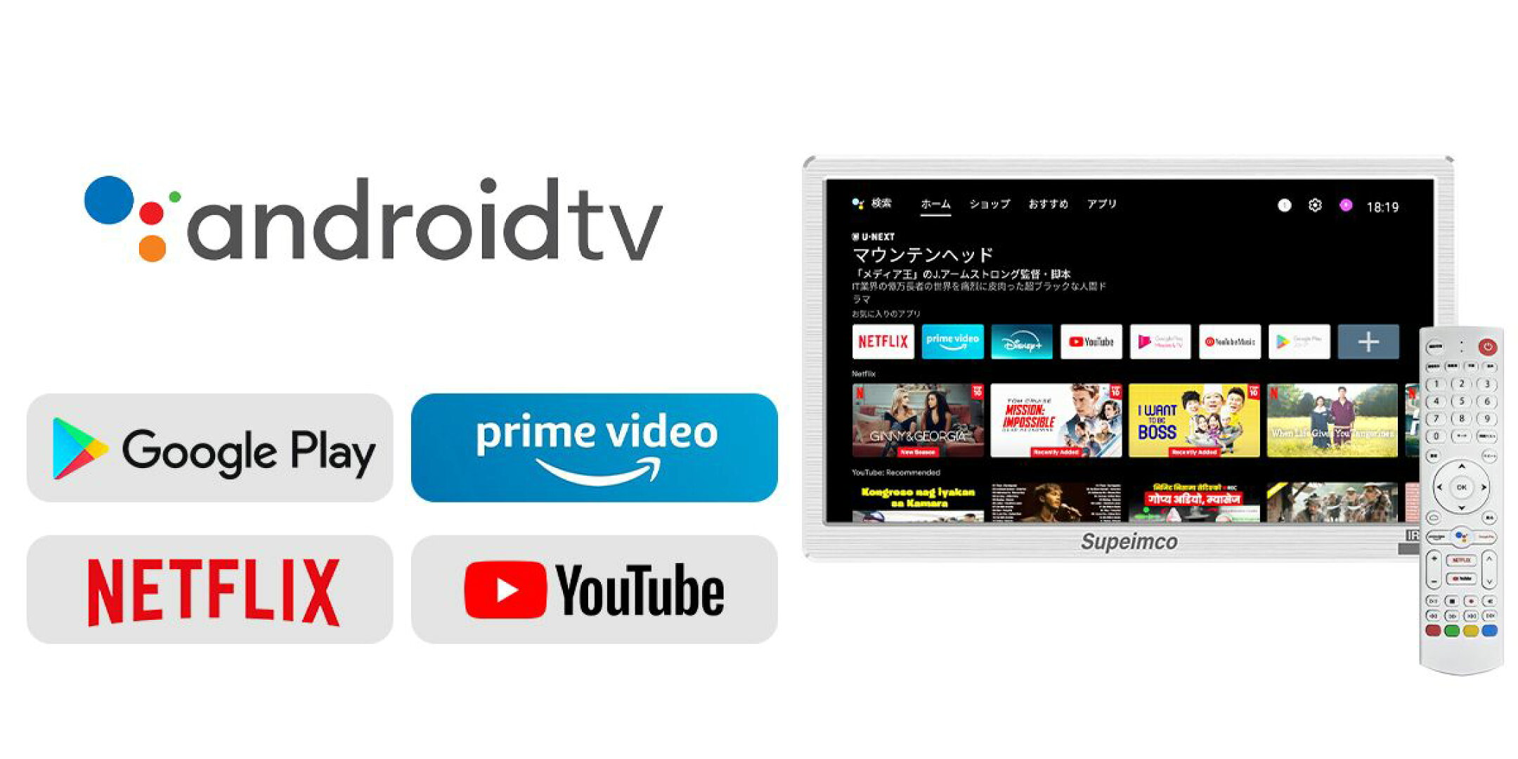チューナーレス テレビ Android スマート テレビ Android搭載 11.6インチ HDMI入力 ネット動画 配信動画 YouTube NETFLIX Amazon Prime 車載 持ち歩き スマホ連動 小型テレビ 一年保証
