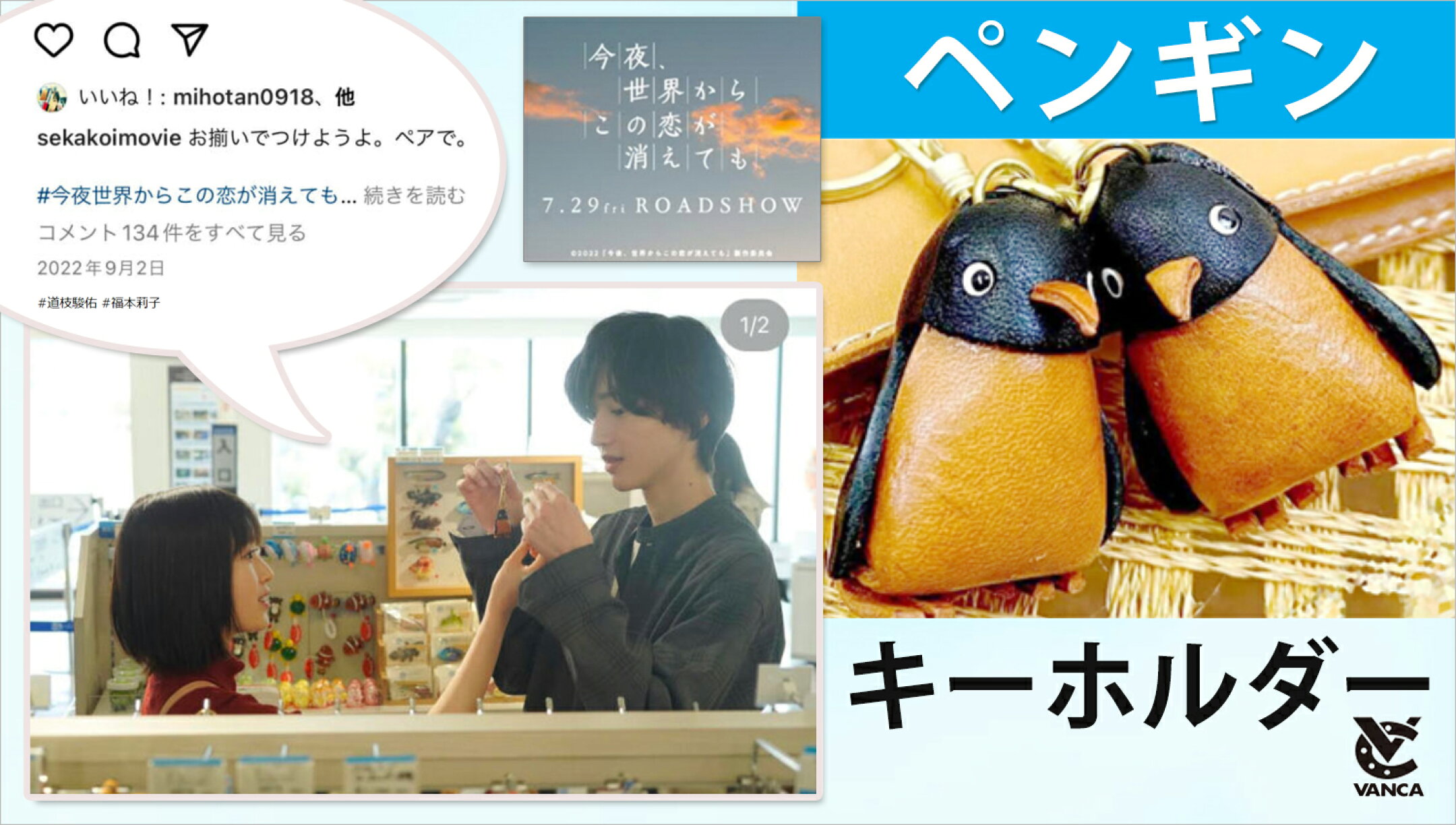 映画「今夜、世界からこの恋が消えても」出演商品 ペンギン キーホルダー【レザー 本革 VANCA バンカクラフト革物語 国産 ハンドメイド お揃い】