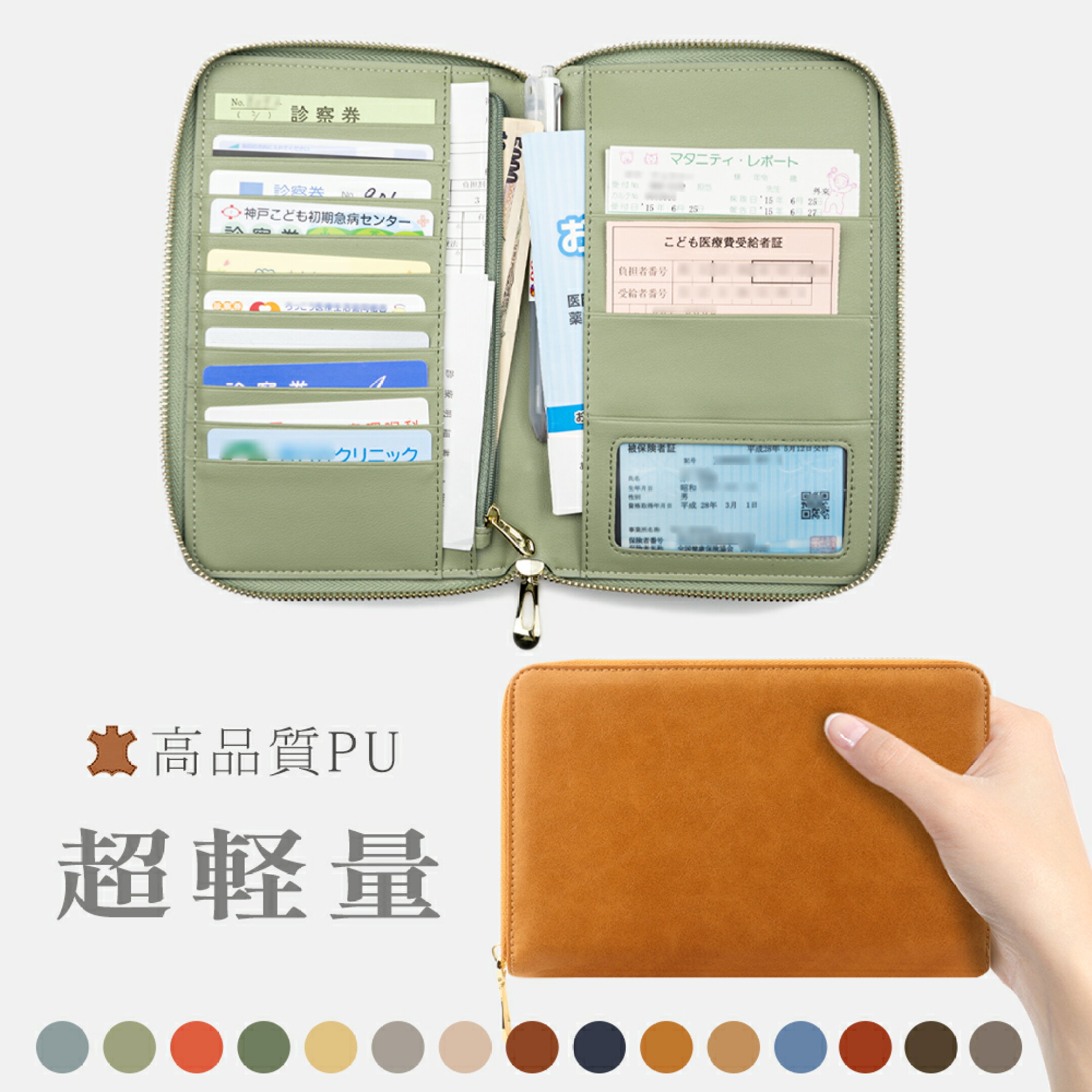 【クーポンで10%OFF】お薬手帳ケース 通院ケース 軽量 携帯しやすい 診察券 マルチケース 保険証 通帳ケース 通院ポーチ 病院用 カードケース 大容量PU おくすり手帳ケース 母の日
