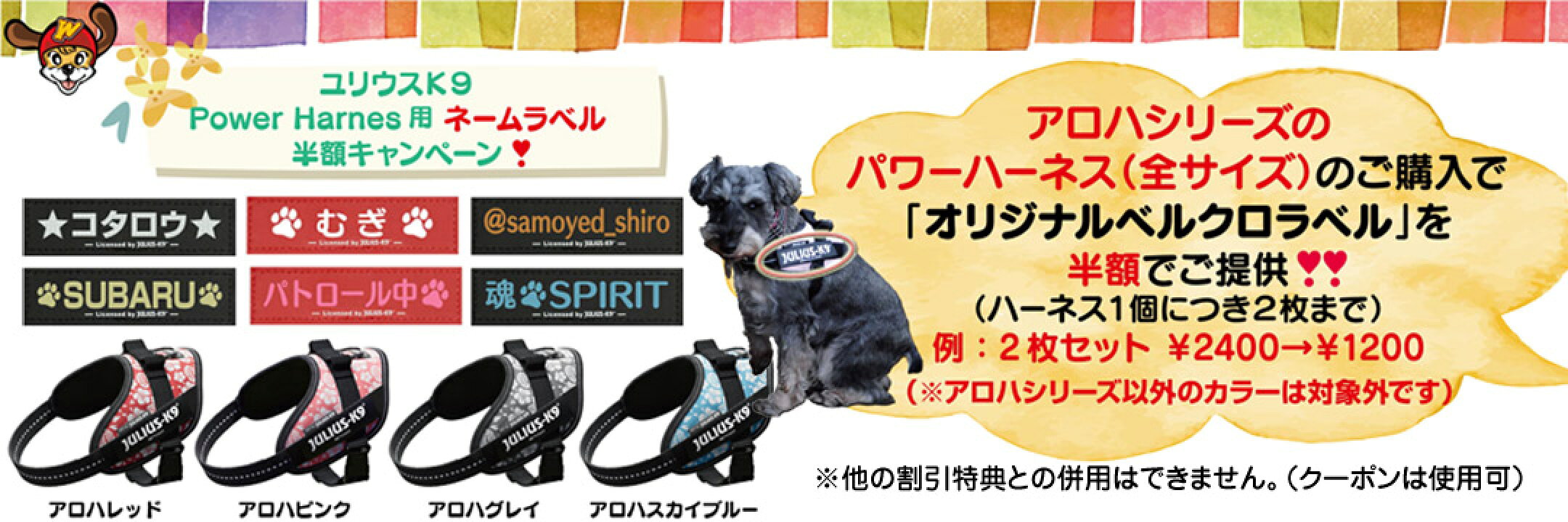ハーネスと同時購入で200円引き(税込) ユリウスk9ネームラベル 【2枚1組 サイズS・M】 <ラベルカラー:4色> 【Julius-K9】 ユリウスケーナイン IDCパワーハーネス用アクセサリ Original Velcro Label オリジナルベルクロラベル マジックテープ <カラープリント>