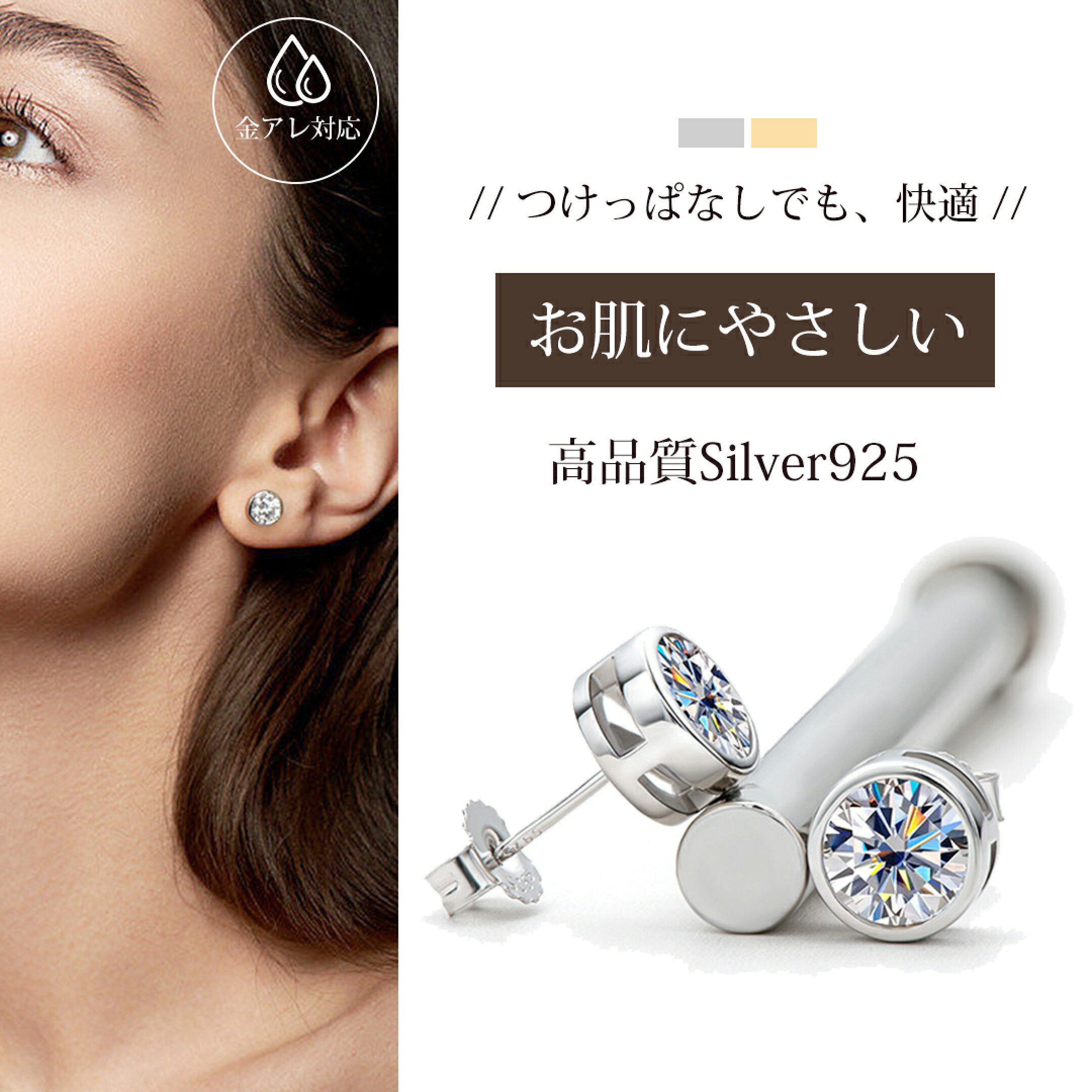 即納★P10倍★ モアサナイト ピアス レディース つけっぱなし 金属アレルギー対応 誕生石 華奢 0.4ct アクセサリー ダイヤモンド より輝く カジュアル 結婚式 ギフト クリスマス プレゼント 普段用 おしゃれ ゴールド シルバー