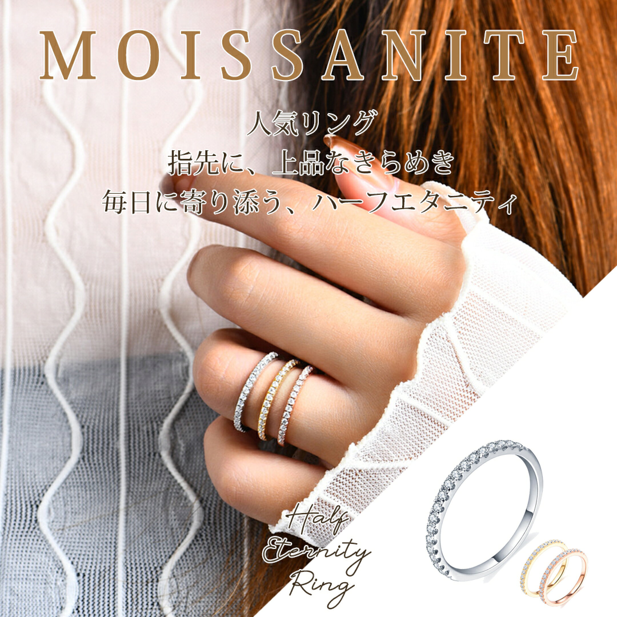 【交換保証付き】 モアサナイト リング ハーフ エタニティ プラチナ仕上げ エタニティリング 指輪 アクセサリー ピンキー 重ねづけ 重ね付け 金属アレルギー対応 レディース ゴールド シルバー ローズゴールド ギフト