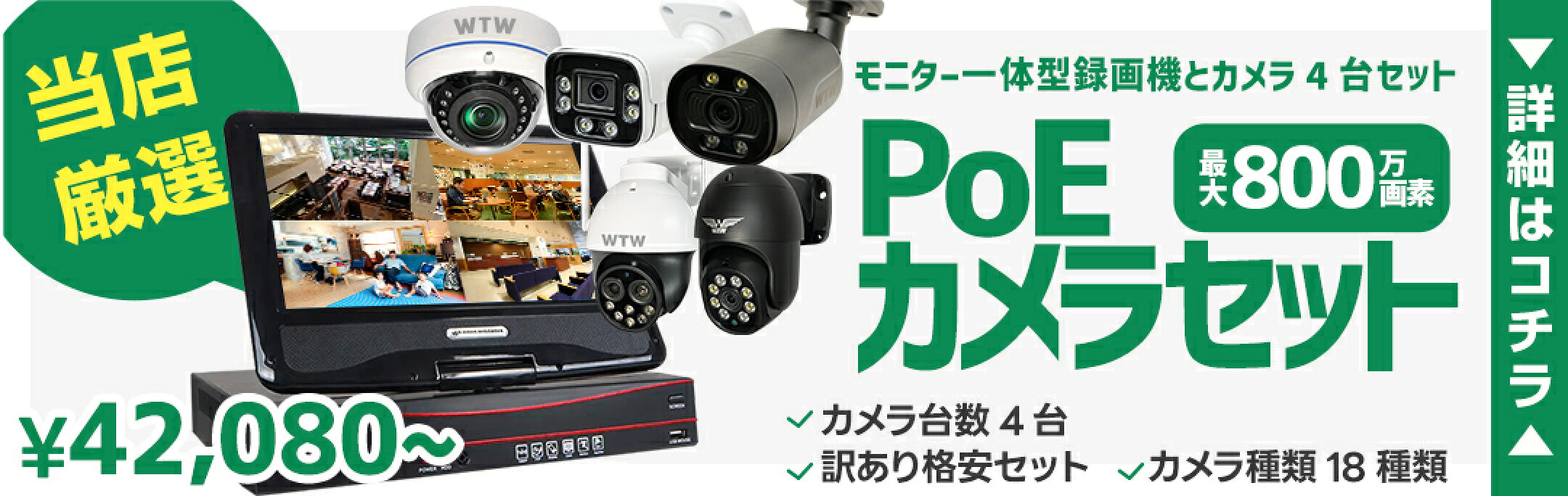 WTW 塚本無線 防犯カメラ 屋外 PoE給電 家庭用 外電源不要 1〜4台 セット 防犯カメラセット 500万画素 IPC PoE 高速録画 屋外 夜間 赤外線監視 遠隔監視 官公庁納入 監視カメラ WTW 塚本無線