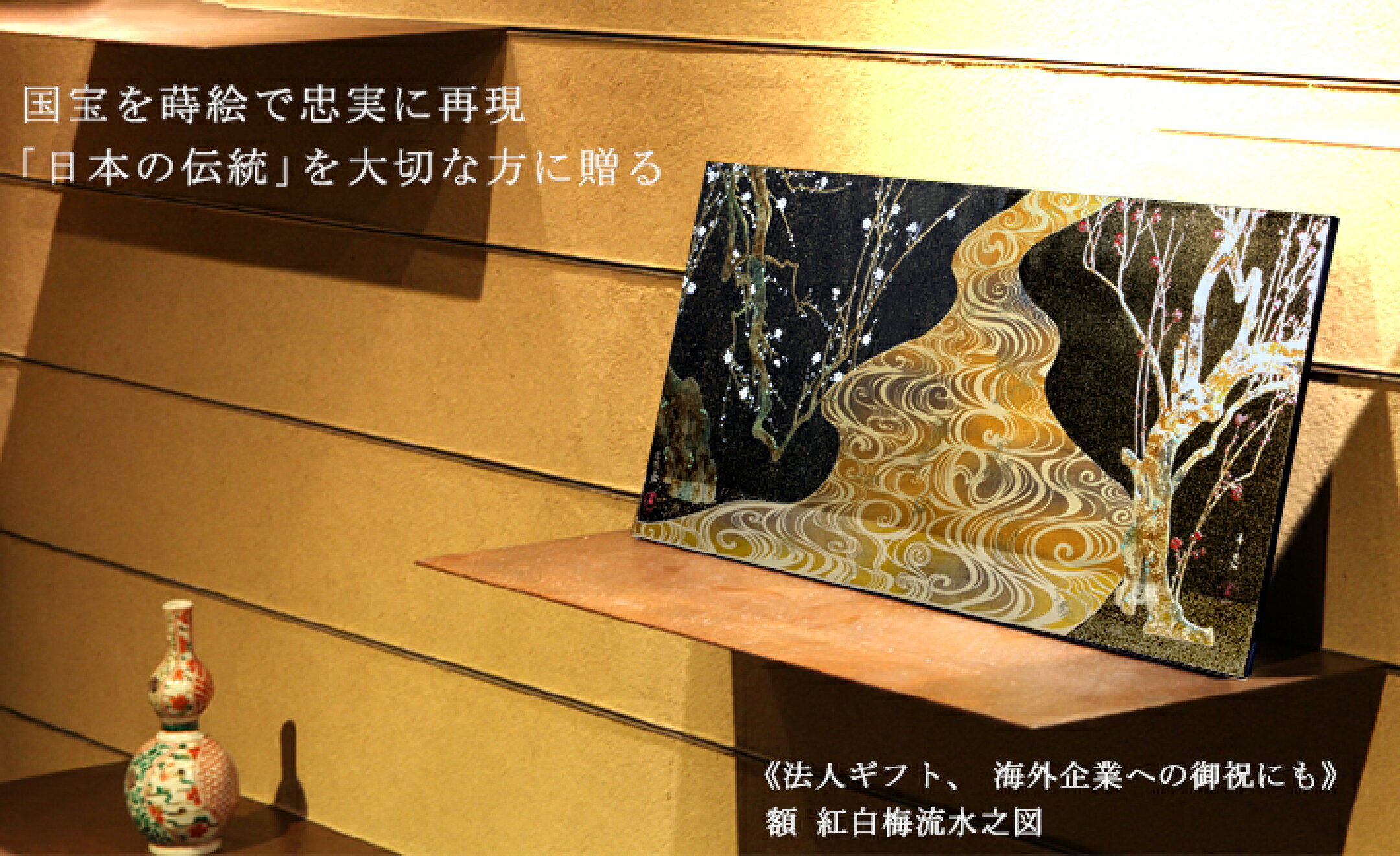 【宮内庁御用達 漆器 山田平安堂】≪法人ギフト・海外ギフト≫扇面額 琳派写インテリア/壁掛け/琳派/紅白梅/燕子花/朝顔/風神雷神/光悦鶴/伝統工芸/蒔絵/漆絵
