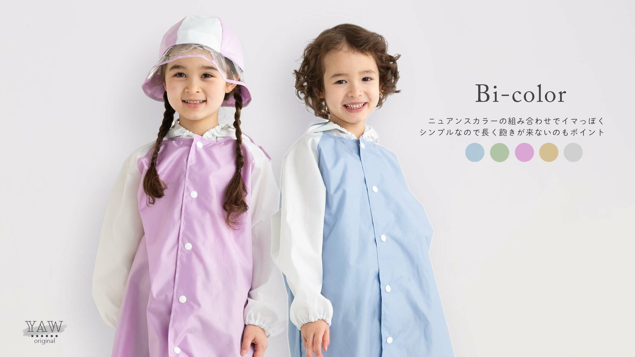 レインコート キッズ ランドセル対応 子供用 ニュアンスカラー くすみ バイカラー 110 120 130 140 150cm 無地 シンプル レイングッズ 男の子 女の子 自転車 雨具 おしゃれ 入園 入学準備 カッパ YAWオリジナル tcpt