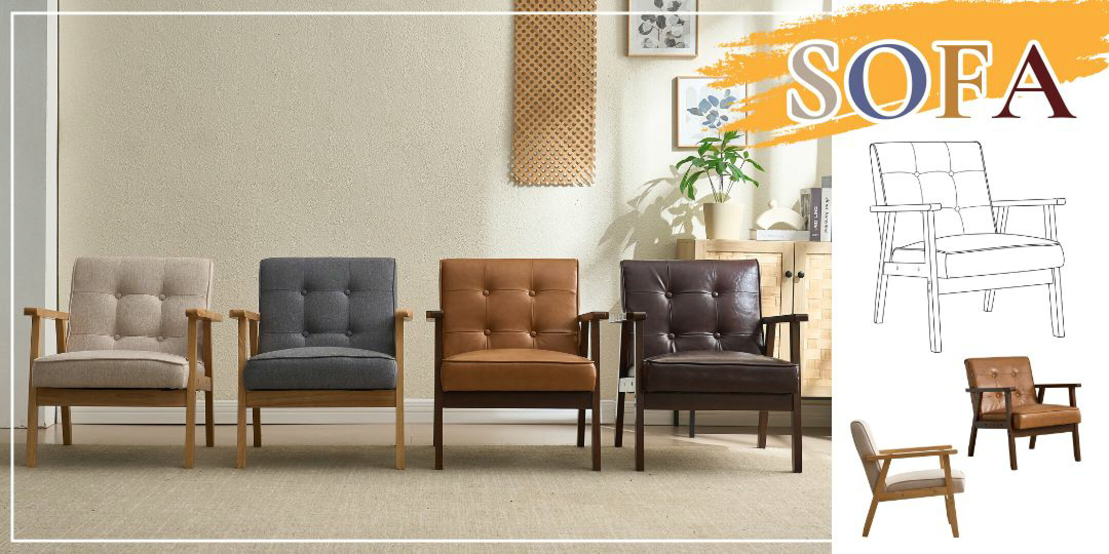 LEOVOL 1人掛けソファ ソファ ソファー ひとりがけ チェア 一人掛け 一人用 椅子 1P 1人用ソファ 木肘 リラックスチェア 4色 北欧 おしゃれ 無垢材 リネン PVC レザー コンパクト リビング ベッドルーム 書斎 一人暮らし ホテル カフェバー