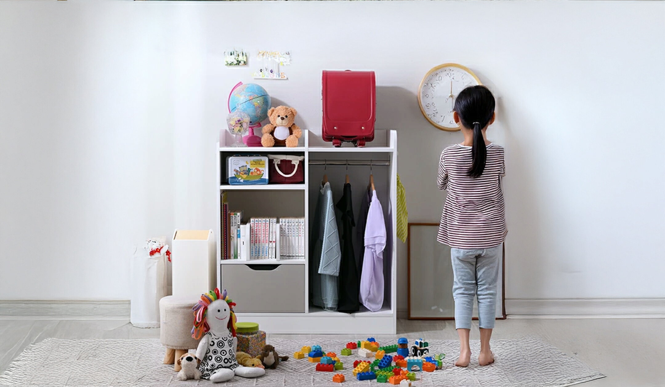 ★LINE追加で300円クーポン★ハンガーラック おしゃれ 棚付き 収納付き 北欧 本棚 シンプル ランドセルラック ハンガー コンパクト 制服 収納 2人用 絵本棚 引き出し付き 大容量 スリム 子供 キッズ 衣類 薄型 低い 仕切り 木製 インテリア オシャレ 棚 収納棚 おもちゃ箱