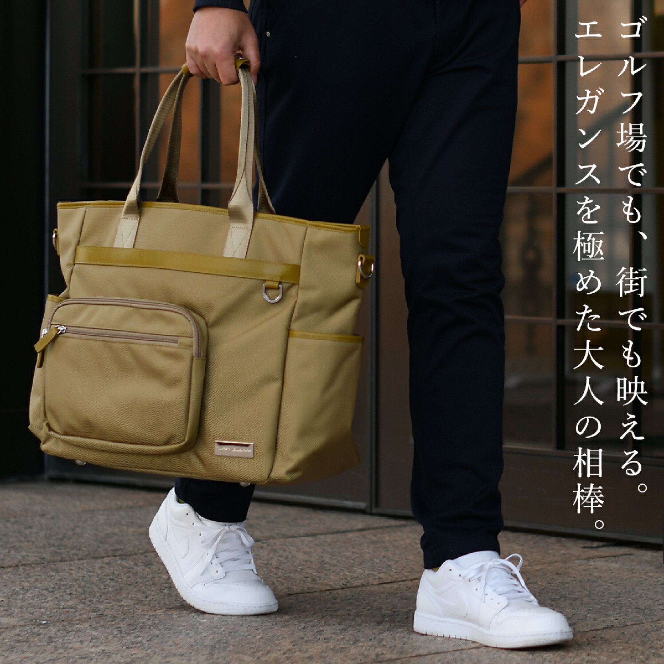 【新発売】お洒落 高級 ゴルフ×タウンユース トートバッグ PREMIUM ARMOR TOTE あおりポケット ゴルフ ラウンドバッグ カートバッグ YUPPY QUOKKA シンセティックレザー コーデュラ バリスティック ナイロン YKK メンズ レディース 撥水 丈夫 ギフト おしゃれ [2025新作]