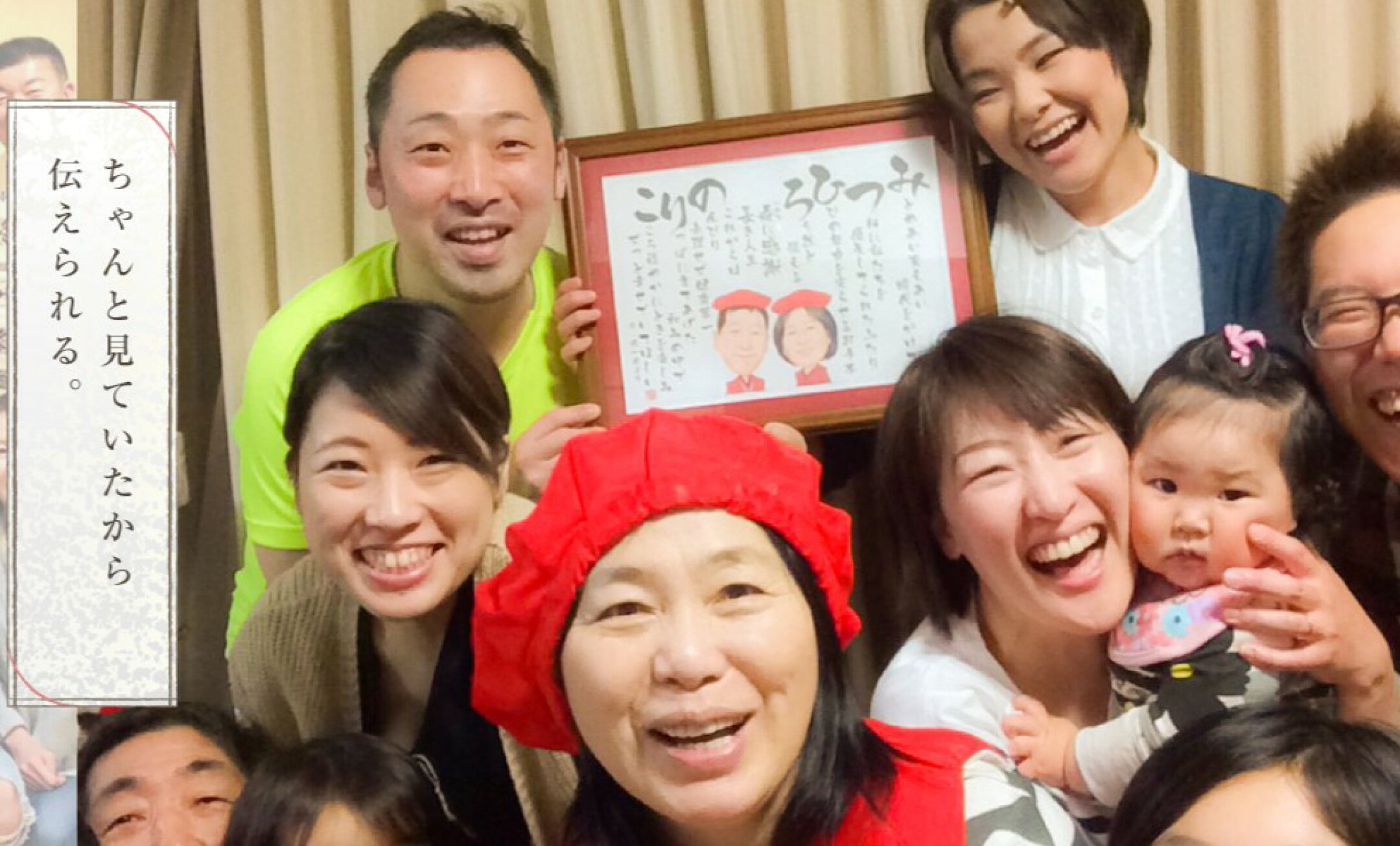 母の傘寿の記念にプレゼントしました。母が大変喜んでいたので、いい記念日になりました。ゆうひ堂様には感謝の気持ちしかありません。 また、作品の作成にあたり、とても丁寧にご対応いただきありがとうございました。