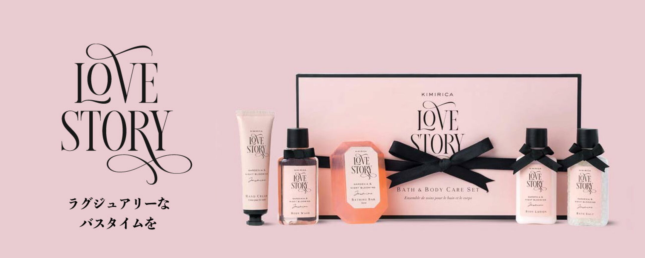 【選べるシール】ギフト ボディケア 3点セット ラブストーリー バスソルト ボディクリーム ボディソープ おすすめ かわいい おしゃれ 女性 人気 いい香り プチギフト ミニギフト 母の日 誕生日 プレゼント 友達 退職 出産祝い 熨斗 20代 30代 40代 送料無料 kimirica