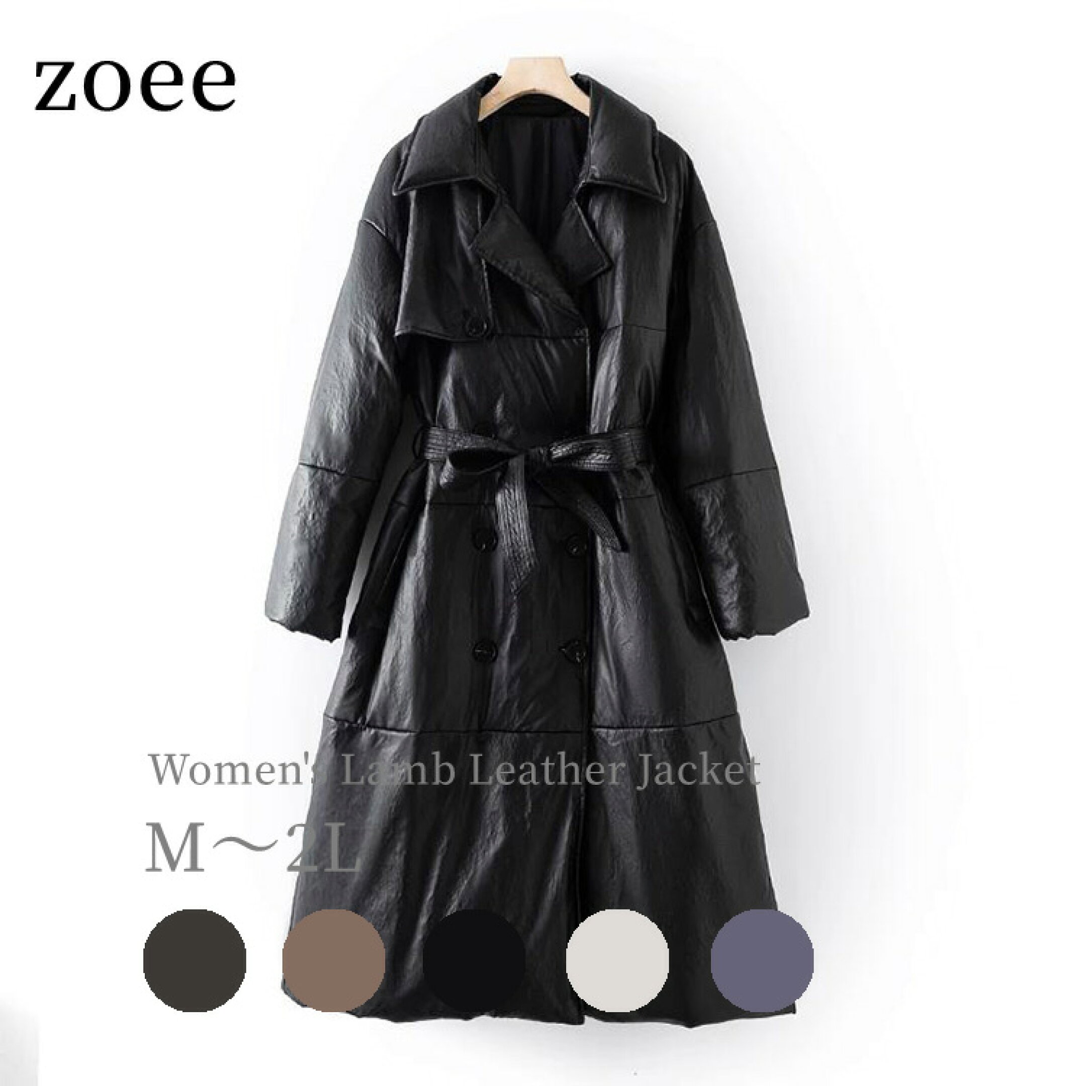 ベルト付き ラムレザー グースダウンコート ロング丈 レディース 冬 アウター レザー 毛皮 アイボリー/ブラウン/チョコレート/パープル/ブラック S/M/L k1b24